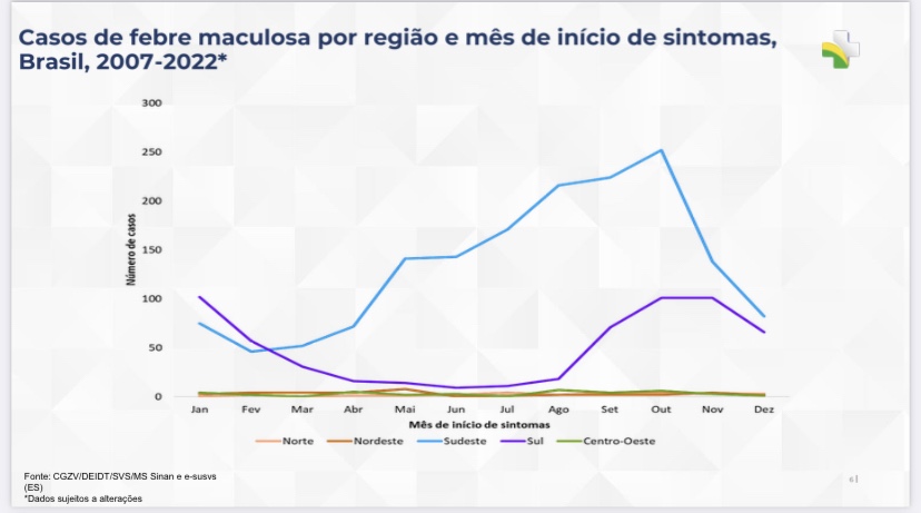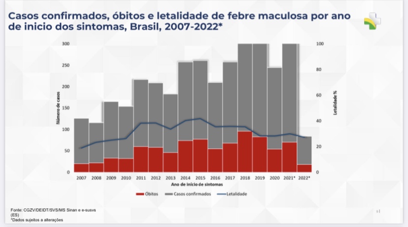 3- Ministério da Saúde- Situação Epidemiológica de Febre Maculosa 2007-2022. Site: https://www.gov.br/saude/pt-br/assuntos/saude-de-a-a-z/f/febre-maculosa/situacao-epidemiologica/situacao-epidemiologica-da-febre-maculosa-brasil-2007-2022/@@download/file
