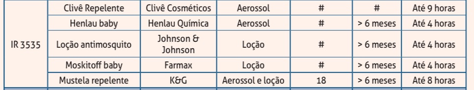 1) Guia Prático de Atualização Departamento Científico de Dermatologia (Junho 2020)- Sociedade Brasileira de Pediatria- Repelentes e outras medidas protetoras contra insetos na infância. Link: https://www.sbp.com.br/fileadmin/user_upload/22479d-GPA_-_Repelentes_e_medidas_protet_insetos_na_inf.pdf