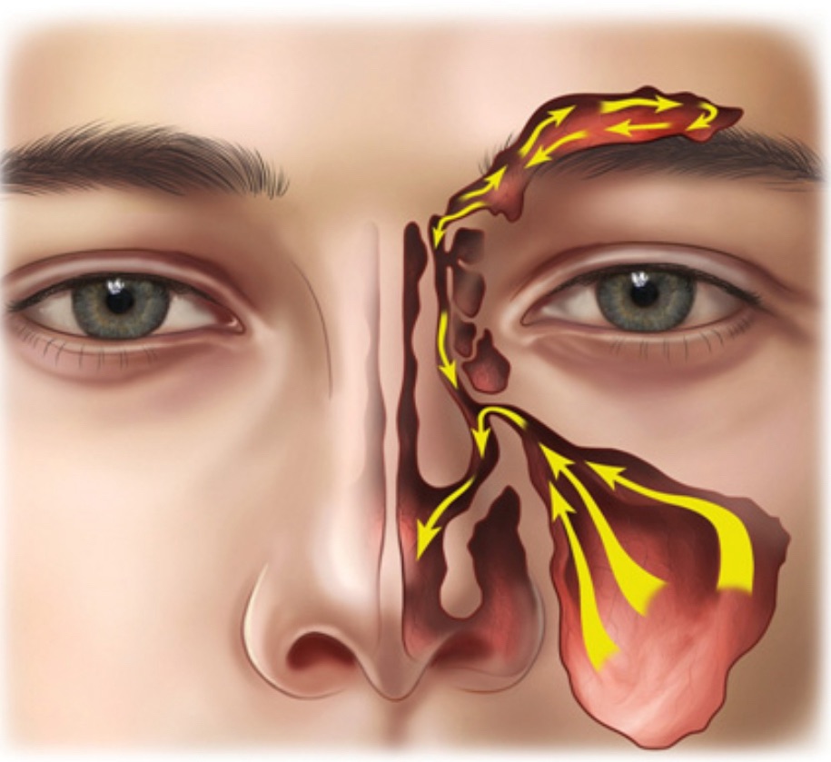 Os seios da face com a inflamação/secreção acabam sendo um local propício para o crescimento e proliferação de bactérias.